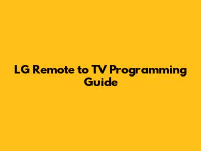 LG Remote To TV Programming Guide