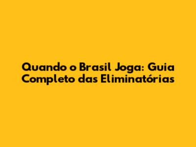 Quando O Brasil Joga: Guia Completo Das Eliminatórias